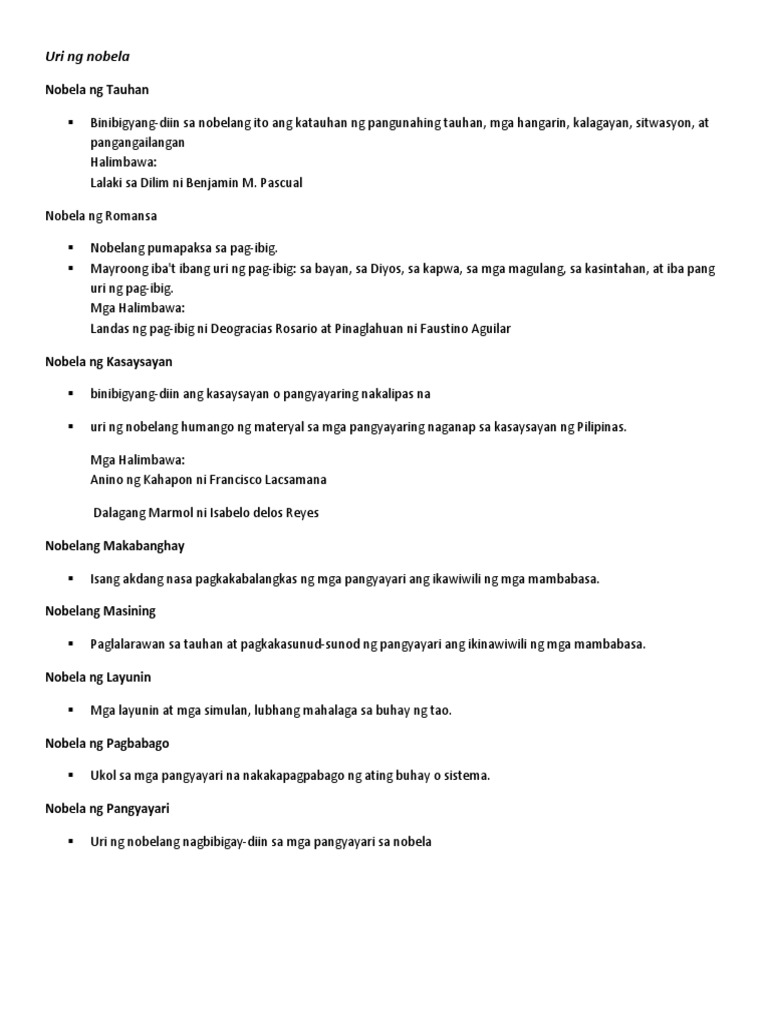 Learn vocabulary terms and more with flashcards games and other study tools. Minsan naman ay hindi na inilalarawan ang mga tauhan. Nobelang Masining - paglalarawan sa tauhan at pagkakasunud-sunod ng pangyayari ang ikinawiwili ng mga mambabasa.