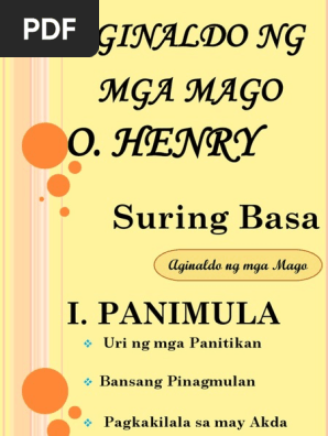 Ilarawan ang mga katangian ng dalawang tauhan sa kuwento. At kinabukasan noon ay PaskoTalagang wala nang dapat gawin kundi sumalagmak sa munting gusgusing sopa at. Henry ito ay isang maikling kuwento mula sa United States of America at isinalin sa Filipino ni Rufino Alejandro.
